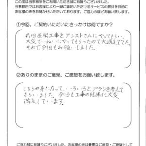 「家の気になっていたことを全て解決していただき、何も心配がないということが、こんなに気持ちが軽くなるとは思わなかったわ。」